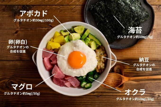 *アボカド,オクラ,海苔,マグロにグルタチオンを含む